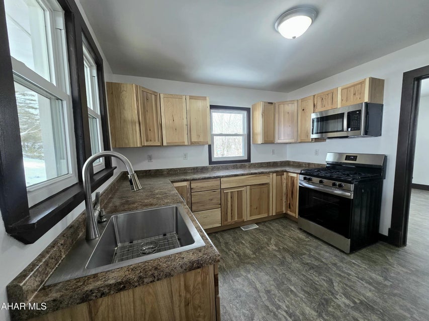 Situated on a corner lot on just over a quarter of an acre in Juniata this 3-bedroom 1.5 bath home is completely remodeled. With a mix of original charm and modern updates all you have to do is move right in. A cape cod style home with option for first floor living, open concept, gas fireplace and natural light throughout are just a few of the things this home has to offer. The exterior features vinyl siding, new metal roof, new windows, a front porch, breezeway, and attached garage. See list of improvements and schedule your private showing today. A property like this will not last! Property has new city water line, with well as extra water source.